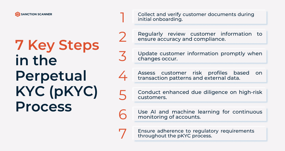By following these steps, organizations can maintain a robust pKYC framework that effectively identifies and addresses potential risks while upholding compliance standards.