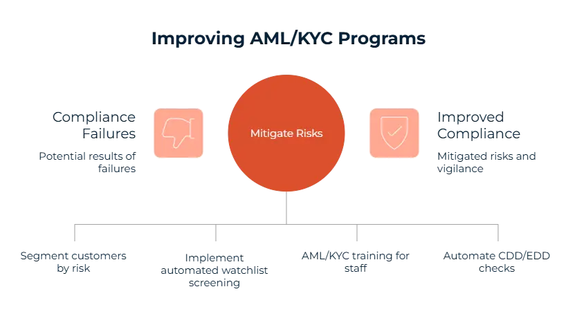 Now, you may have decided to double down on improving your AML/KYC program after having seen the potential results of compliance failures. Luckily, there are several things you can do to mitigate these risks.