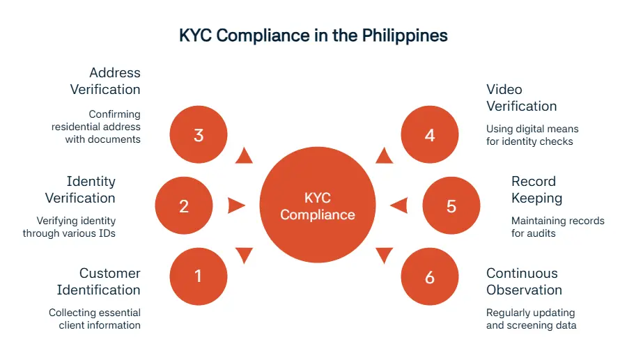 KYC in the Philippines includes identity verification, proof of address, and risk profiling. Institutions must comply with AMLA and BSP regulations.