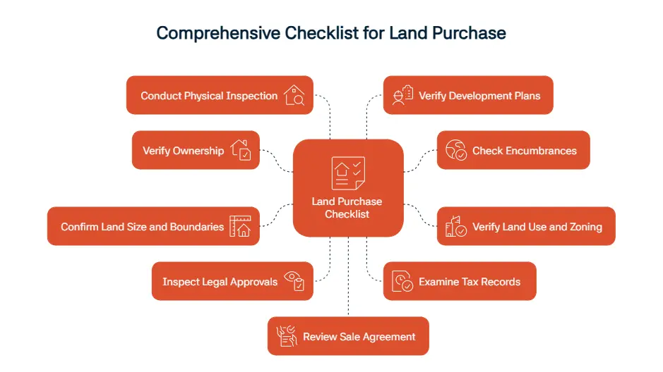 Conducting proper due diligence ensures the land is legally, financially, and practically suitable for purchase. Here’s a breakdown of what this process involves: