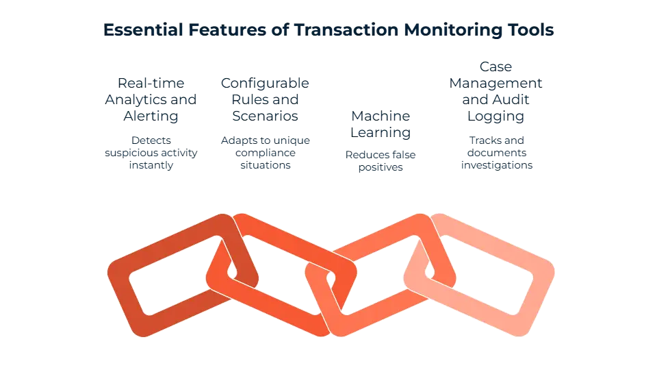 There are several features that may be helpful in your transaction monitoring tool search. The first feature to look for is the real-time analytics and alerting; this feature ensures you detect suspicious activity as soon as possible. Configurable rules and scenaries come in handy when your compliance team comes across a unique situation that requires more preparation. Machine learning is rising in popularity and has been getting implemented into many tools in the recent years; this feature can help reduce false positives. The final feature we at Sanction Scanner recommend is case management and audit logging options to help keep track of what is tracked, investigated, and then documented in a clear way.