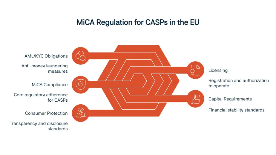 According to MiCA regulations which sets certain standards for crypto operations in EU member states, CASPs in the EU have to be compliant with several obligations by 2025.