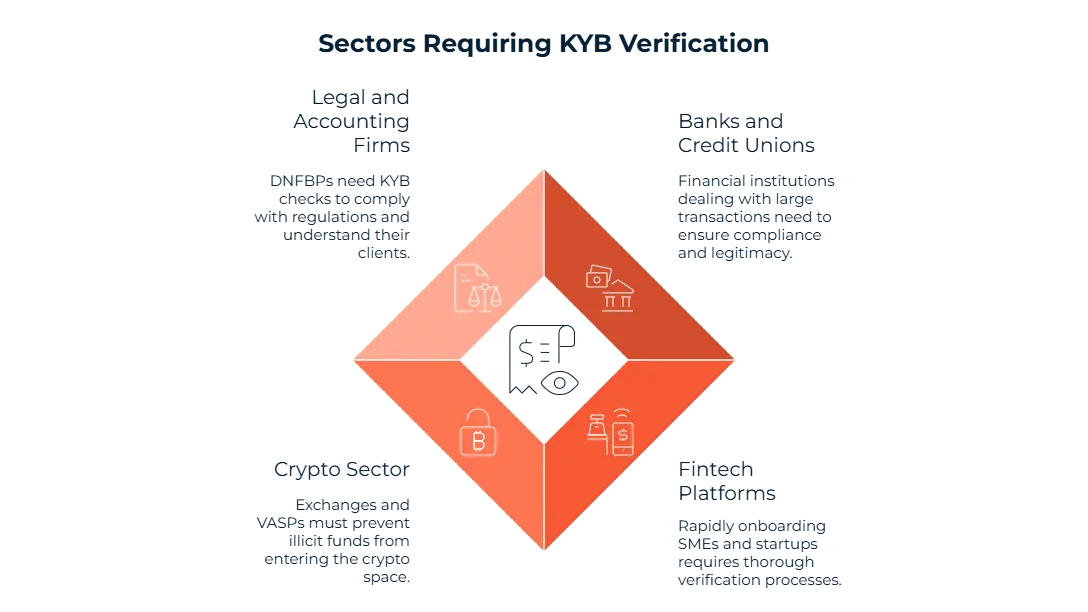 Banks, fintechs, crypto firms, and payment providers must perform KYB on business clients.